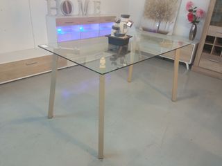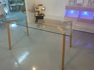 Mesa fija rectangular de cristal templado transparente matas de cero en color madera 75x140x80cm Precio en kit Grarantia de fabricante *Consultar condiciones de envío 674539087 Ref. 042