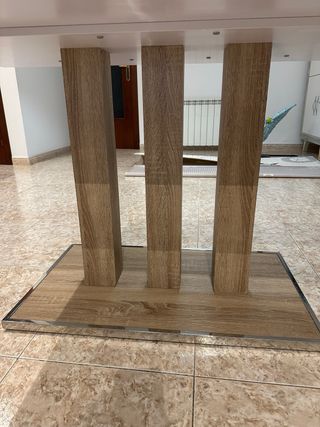 Conjunto de mesa de comedor con superficie de cristal y estructura de madera. Ampliable A RECOGER EN GRANOLLERS - Diseño moderno y elegante. - Ideal para espacios de comedor. - Combina materiales de calidad.