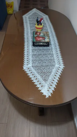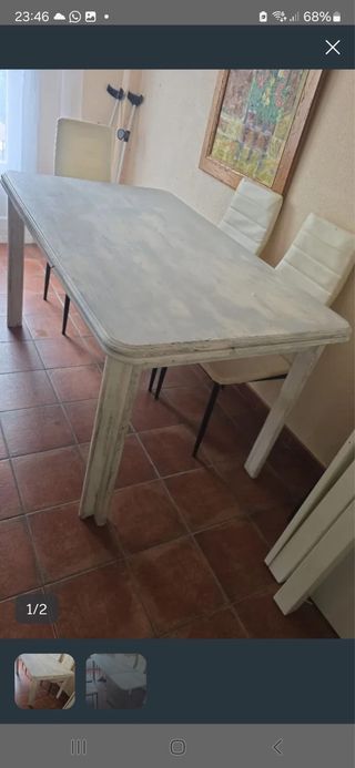 Mesa moderna con un diseño elegante y minimalista. - Superficie lisa y resistente. - Patas robustas y estables. - Tiene algunos desperfectos por el paso de los años. - Medidas: 160 x 75. - Precio negociable.