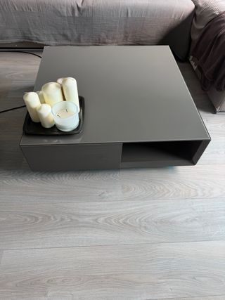 tb se vende por separado Elegante mesa de centro con un diseño moderno y minimalista. Su superficie de cristal le da un toque sofisticado. - Acabado en color gris. - Material de cristal.