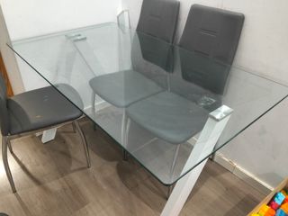 Mesa de cristal y acero. En perfecto estado a juego con 4 sillas como nuevas. No están oxidadas ni ralladas. Precio negociable