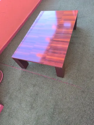 Mesa color nogal de muy buena calidad. Está en perdecto estado.