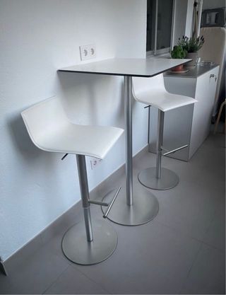Mesa alta de la marca Lapalma. - Mesa con sobre blanco y base plateada. - Como nueva, sin uso. Se vende solo la mesa.