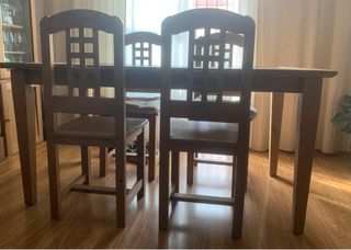 Mesa y 4 sillas de madera