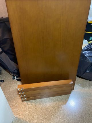 SE NEGOCIA TRANSPORTE CERCA DE SANLÚCAR, puedo llevártelo a tu domicilio por 10€ más. Conjunto de mesa de comedor plegable y tres sillas. La mesa es de madera y tiene un diseño sencillo y práctico. Las sillas son de metal y madera, con un estilo clásico. - Mesa extensible. - Tres sillas incluidas. - Estructura resistente. - Ideal para espacios pequeños. Con dos Cajones Medidas: 178cm de largo desplegado 109cm Plegada 70cm de ancho 75cm de alto