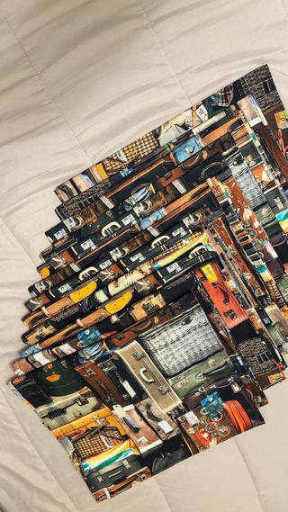 Conjunto de doce caminos de mesa o manteles individuales con un diseño único de maletas vintage. - Diseño detallado de maletas de viaje antiguas. - Aportan un toque retro a tu mesa.