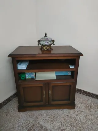 Mesa de madera,ideal para debajo de la tele.Tiene arañacitos y una pata deteriorada.Mide 1.50 x 55 y 36cm de alto