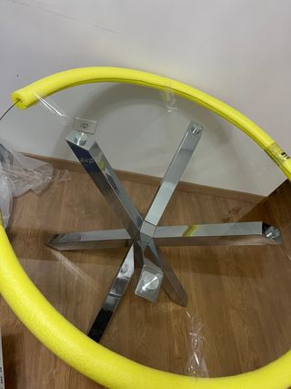 Vendo mesa de cristal para exterior o interior en muy buen estado. La vendo porque no la usaba y compré algo más pequeño. ATENCIÓN: La vendo desarmada como pueden ver en las últimas fotos porque vivo en un sexto.