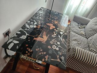 Poco uso, en perfecto estado, tanto el cristal como los caballetes. Mesa de Ikea modelo Glasholm, muy amplia y versátil, se puede ver sin compromiso costó más de 100€. Medidas 1.50x80x71