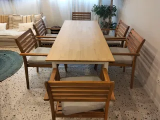 Mesa comedor madera artesanal y 6 sillas.