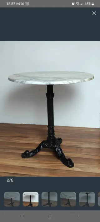 Elegante mesa redonda con sobre de mármol y base de hierro. - Diámetro: 70 cm - Altura: 70 cm - Diseño clásico y robusto. RECOGIDA EN MILLADOIRO. NO ENVIO