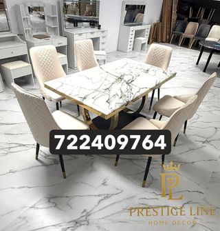 Conjunto de comedor compuesto por mesa con tapa de cristal templado efecto mármol, resistente y elegante, acompañado de sillas en polipiel con diseño acolchado que combinan estilo y comodidad. Una opción moderna y práctica que aporta sofisticación al espacio, ideal para disfrutar tanto en reuniones como en el día a día. MEDIDAS:140X80CM *ENVIO A DOMICILIO (CONSULTAR PORTES)* *PAGO CONTRAREEMBOLSO* *NUEVO DE FABRICA 3 AÑOS DE GARANTÍA* MOD: DT-9034 + C-C05