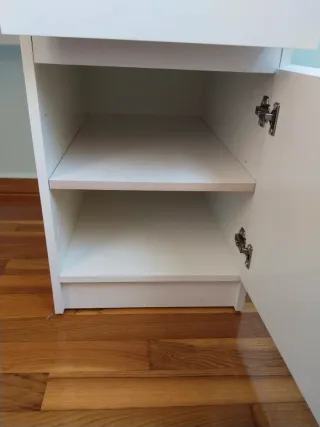 Mesa de estudio moderna y funcional, con un diseño limpio y minimalista. - Acabado en color blanco. - Incorpora un cajón para almacenamiento. - Estructura robusta. Pequeñas marcas de desgaste encima,de hay su precio. Medidas: 140x65 cm.