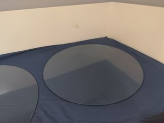 Dos cristales circulares para mesa. Son transparentes y de vidrio. - Diámetro aproximado: 70cm y 80 cm - Grosor aproximado: 1cm - Bordes pulidos para mayor seguridad.