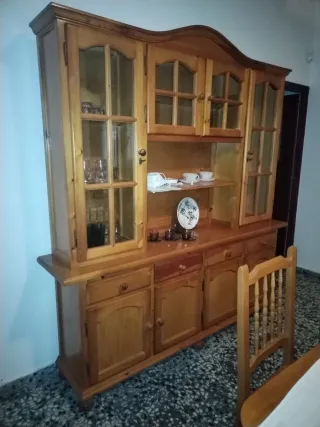 Conjunto de comedor compuesto por un aparador de madera y una mesa extensible. - Aparador de madera con puertas y cajones. - Mesa extensible para adaptarse a diferentes espacios.