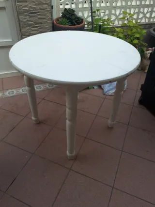 Mesa de comedor - Tablero de color blanco. - Patas de madera natural. Está esportillada por los laterales.
