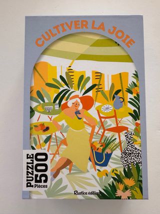 Puzzle de 500 piezas de la marca Rustica editions, con la ilustración Cultiver la Joie. - Ilustración colorida y detallada. - Ideal para coleccionistas o amantes de los puzzles. Selling a French 500-piece puzzle, a design puzzle—very beautiful and high quality. All pieces are included. If you want, I’m also giving away a 300-piece puzzle as a gift, which is missing one piece. It’s a puzzle with tasks and investigation challenges, also French. I can send a picture in chat.