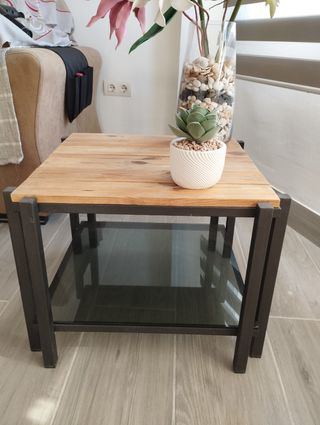 Mesa baja madera y cristal