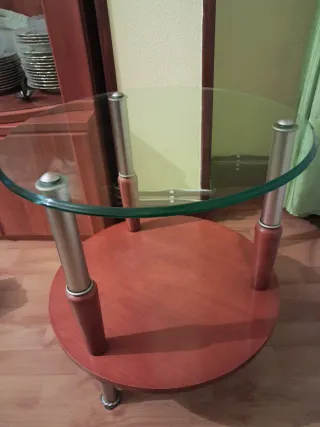 Mesita salón cristal y madera