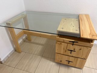 Elegante mesa auxiliar con superficie de cristal y estructura de madera. - Diseño moderno y funcional. - Ideal para espacios pequeños o como mesita de rincón. - Incorpora un estante inferior para almacenamiento adicional. Se encuentra en buen estado , con pequeños defectos tal y como se aprecia en las fotos. Si tienes cualquier duda no dudes en contarme ;)