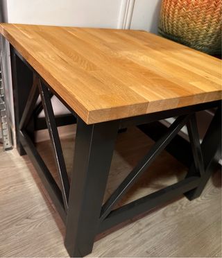 Mesa auxiliar de madera de Ikea. Su diseño sencillo la hace versátil para cualquier espacio. - Tablero cuadrado. - Patas robustas.