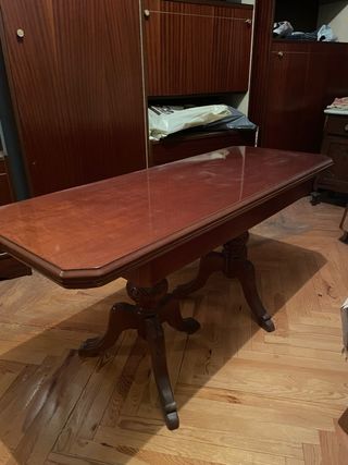 Urge. He de retirarle de su lugar por eso bajo tanto el precio. Conjunto de muebles para salón, ideal para crear un espacio acogedor. Tiene 15 años, nuevo costó 6.000€. - Mesa de centro (45cm alto, 1 metro largo y 60 cm de ancho) - Mesa de comedor (75cm alto, 140 largo con posibilidad de extension otros 70cm, 90 cm de ancho) - Aparador( 90 de alto, 1,60m largo y 50 ancho) - Mueble salón (3 módulos y balda) Todos de ancho 40 cm, la balda 20cm, Modulo 1 (1,30 x 1,30) módulo 2 (60x 1,50) y modulo 3 (1m x 1,90m)