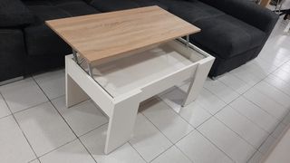 Mesa de centro para salón con diseño moderno y funcional. - Tapa elevable para mayor comodidad. - Amplio espacio de almacenamiento interior.