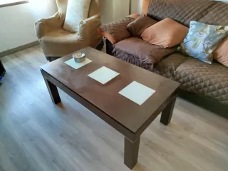 Mesa de centro de madera Vendo mesa de centro de madera con diseño sencillo y elegante. Ideal para salón o zona de estar. Medidas: - Largo: 115 cm - Ancho: 54 cm - Alto: 30 cm La mesa está en estado aceptable, con algunas marcas de uso, pero sigue siendo sólida y funcional. Solo recogida.
