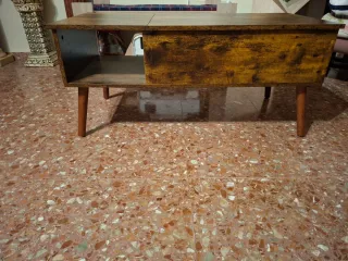 Mesa de centro con tapa elevable, ideal para salón. Perfecta para trabajar con portátil, comer en el sofá o aprovechar espacio. ✔️ Tapa elevable muy práctica ✔️ Cajón + compartimento oculto ✔️ Diseño moderno en madera y cristal ✔️ Color marrón oscuro elegante ✔️ Convertible en mesa tipo comedor 📦 Incluye: • Cajón frontal • Compartimento oculto interior • Sistema elevable robusto • Estética elegante y limpia Precio nueva: 150€ 💰 La dejo a 50e Ideal para pisos modernos, apartamentos o segunda vivienda.