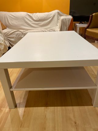 Mesa baja de salón con un diseño moderno y limpio. Su superficie lisa y patas robustas la hacen un mueble práctico y elegante.Tiene un defecto pequeño - Acabado en blanco.