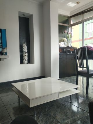 Mesa de centro blanca seminueva, en buen estado, con ciertos rasguños apenas perceptibles. Ideal para pisos de estudiantes o cómo mesa de centro. Para recoger en casa.