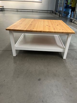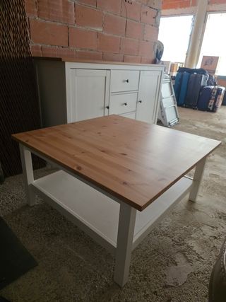 Mesa de centro modelo Hemnes de Ikea. Combina un tablero de madera de pino con una estructura blanca. - Tablero de madera de pino. - Base y patas en color blanco. Pequeña hendidura en el tablero, nada grave.