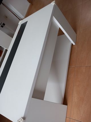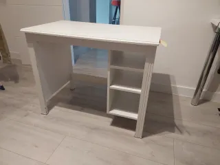 Escritorio funcional de Ikea con un diseño moderno y práctico. Ideal para tu espacio de trabajo o estudio. - Cuenta con tres estantes abiertos. - Superficie amplia para colocar ordenador y otros objetos. - Patas estables para mayor seguridad. Lo ha dado todo, necesita reparación, pero se puede usar.