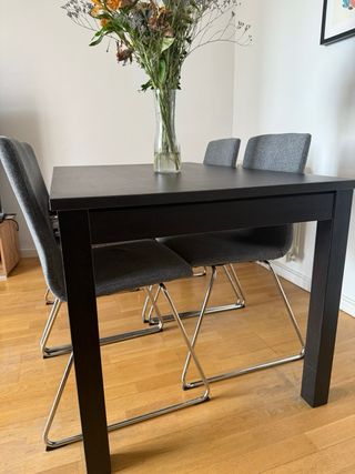 Mesa de comedor modelo Laneberg de IKEA. Su diseño moderno y elegante aportará un toque distintivo a tu hogar. - Tablero de madera. -Modelo extensible lo único es que hay una pata que la madera está inflada.