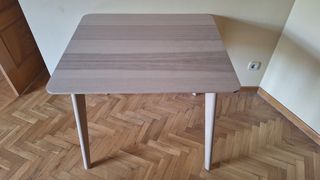 Mesa auxiliar LISABO de IKEA, en perfecto estado. - Diseño moderno y minimalista. - Patas de madera maciza. - Tablero con acabado en tono claro. - Muy sólida, no cruje ni cojea