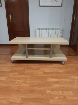 Mesa de centro prácticamente nueva, color roble. Se entrega por separado la balda con el kit de atornillar. Tiene un pequeño rasguño en el borde, no muy perceptible, por lo demás perfecta.