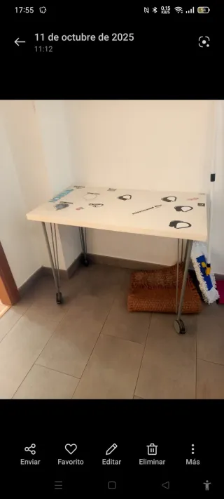 Mesa con ruedas. Tiene pegatinas 1 metro de largo x 60 ancho Se entrega desarmada