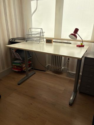 Mesa elevable TRULSTORP de IKEA en muy buen estado. Siempre protegida con vidrio desde el primer día, por lo que el tablero está muy bien conservado. ✔ Tablero elevable con almacenaje interior ✔ Ruedas discretas para moverla fácilmente ✔ Muy robusta y práctica La vendo porque me mudo a un sitio más pequeño y necesito una mesa más pequeña. Medidas: 115 × 70 × 46 cm Con las ruedas queda un poco más alta, lo que la hace más cómoda para usarla desde el sofá. Se puede recoger hoy en Madrid centro. Si conoces este modelo de IKEA, ya sabes lo práctico que es. Puedes venir a verla sin compromiso.
