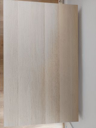 Mesa abatible de madera de Ikea, ideal para espacios reducidos. Está nueva y es perfecta para usarla como escritorio o mesita auxiliar. - Diseño compacto y funcional. - Fácil de plegar y guardar. - Superficie lisa y limpia.