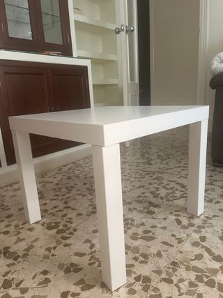 Mesa auxiliar Lack de IKEA en color blanco. Está en buen estado y lista para usar. - Medidas: 55x55 cm - Perfecta como mesita auxiliar. Tento 2 disponibles, las dos por 10€. En Ikea cuestan el doble como se ve en la foto.