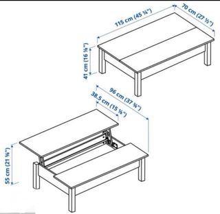 Mesa de centro de ikea con amortiguadores de cierre automático. Medidas: 120 x 70 y 40cm de altura