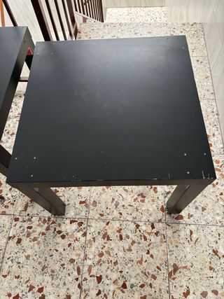Mesa de centro Lack de Ikea. Su diseño sencillo y moderno se adapta a cualquier espacio. - Tablero de madera. - Color negro. Patas reforzadas Las dos por 7€ Una 4€