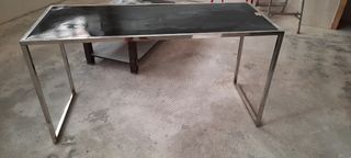 Mesa de metal antioxidante y superficie tipo cristal negra tamaño en fotos vendo por vaciar bajera