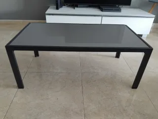 Elegante mesa de centro con un diseño moderno. - Tablero de cristal. - Estructura de metal. - Color negro y gris. - Quien lo compre ha de recogerlo en San juan de Moró.