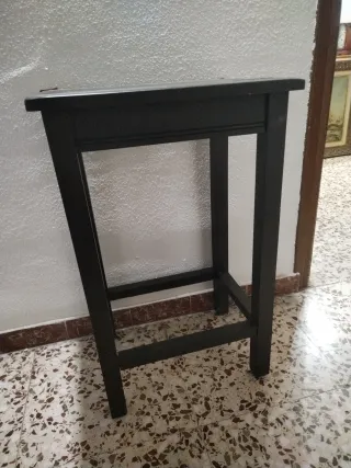 Mesa auxiliar de madera negra . Mesa de teléfono .