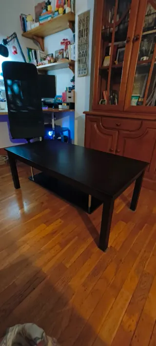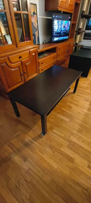 Mesa de centro baja - Estructura de madera. - Color negro. - Incluye balda inferior para almacenaje. La mesa nos encanta y está aún bien, la vendemos porque nos han regalado otra :/