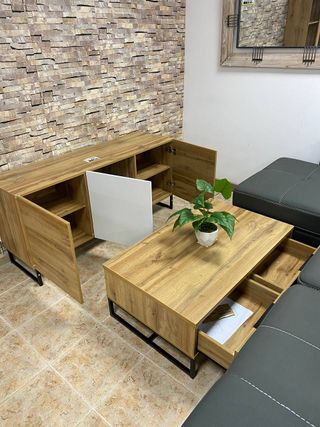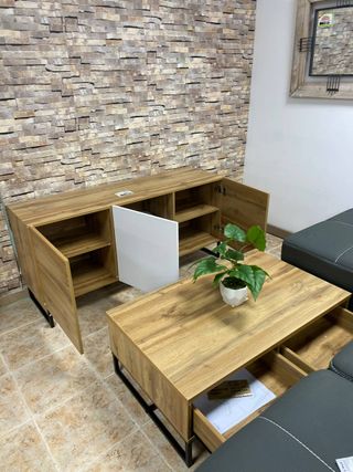 ¡Oferta especial conjunto de salón 220€! ✔ Bajo de TV moderno ✔ Mesa de centro a juego ✔ Estilo industrial muy actual ✔ Perfecto para cualquier salón ✔ Totalmente nuevo 💰 Precio fijo: 220€ ━━━━━━━━━━━━━━━━━━━ 📲 643*189*083 🚚💨 Entrega rápida 🏡⬆️ Subida a domicilio 💸 Pago en persona