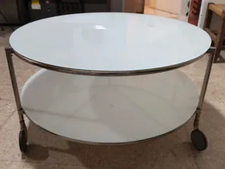 Mesa redonda de cristal con ruedas