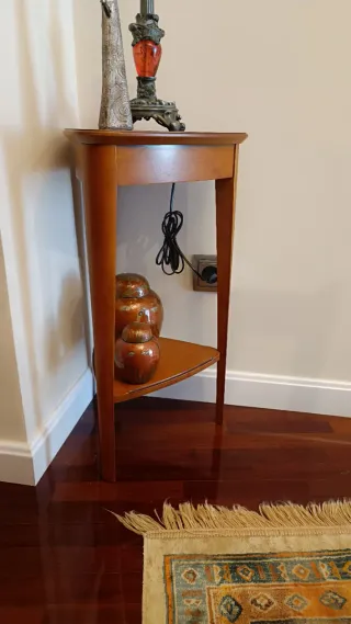 Elegante mesa de centro con un diseño clásico y funcional. Pequeño desgaste en la esquina que se parecía en la foto, pero se puede arreglar fácilmente con un poco de barniz - Acabado en madera de alta calidad. - Diseño de dos niveles para mayor espacio. - Patas robustas y estables.