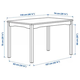 Conjunto de mesa alta con superficie de madera y dos taburetes blancos. - Diseño moderno y funcional. - Ideal para espacios de comedor o cocina. - Taburetes con respaldo cruzado. Mesa isla Tornviken Ikea largo: 126cm Ancho: 79cm Alto: 90cm Silla Ikea Ingolf 63 cm de alto.